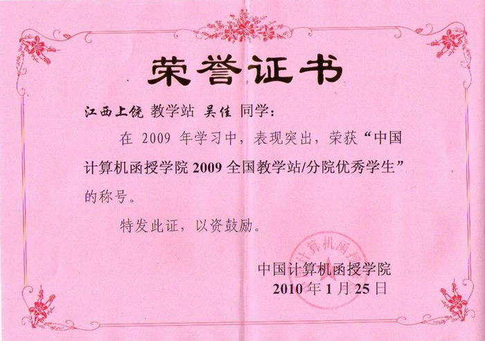 何樹、劉悅、官小燕、馮小燕、鄭琪琪同學:在2012年學習中,表現突出,榮獲“上饒環亞電腦學校優秀學員”的稱號!...