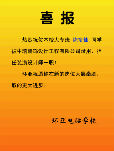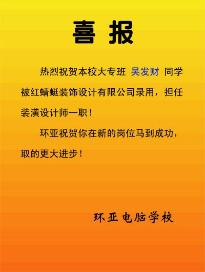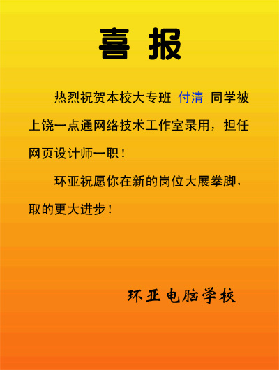 當然,也有部分同學對于學校推薦工作并不十分“感冒”,他們的想法是,要自己去找更好的工作,因為,他們相信,學到了真正的技能,又擁有了較好的大專證書,找工作是不用愁的。這部分學生很自信,在就業形勢如此嚴峻的情況下,他們敢于去追求自己的理想,這種底氣來自哪里呢?那就是對自己專業知識的充分認可。一位在校生表示,環亞電腦教育根據市場的需要,推出的“技能(TECHNOLOGY)+大專(COLLEGE)”(簡稱“TC精英教育)項目,一方面培養學生們的專業技能,大家能夠在校期間,學習到過硬的專業本領,在實踐中不斷提升自己的業務能力,并且可以經常參加校內活動,鍛煉自己的交際能力和職業素質,擁有了這些職場必備的技巧,在工作中將會是游刃有余。