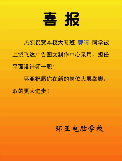 除此之外,上饒環亞電腦學校,還讓學生在校期間完成中國計算機函授學院教育全部課程,通過考試以后,可以取得中國計算機函授學院大專/本科證書,從而真正實現一份努力,兩份收獲。大專證書+技能,就業,還有什么問題嗎?