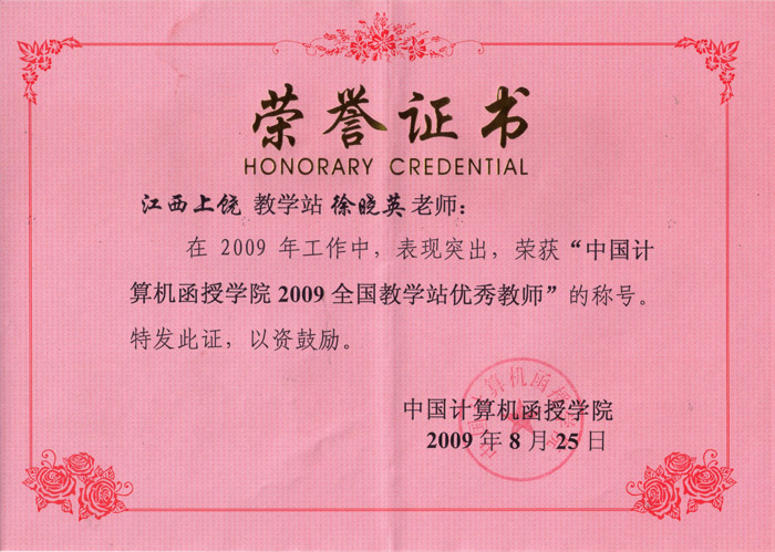 近日,由中國計算機函授學院舉行的“全國教學站優秀教師”評選活動落下帷幕,上饒環亞電腦學校教師獲得“中國計算機函授學院2009全國教學站優秀教師”的殊榮。