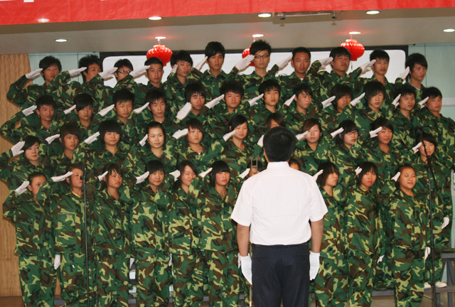 大合唱比賽進行到最后,禮花聲聲響,繽紛彩絮降,在學生二隊與學院全體的起立合唱《歌頌祖國》的歌聲中圓滿閉幕。
