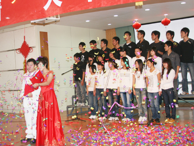 遠教圖書隊和“綜合事務部?五千年公司”聯合隊同獲二等獎。值得注意的是,本次比賽中,該聯合隊員們別出心裁,在歌曲《紅旗飄飄》演唱中,隊員們人手一只紅色小旗,其間更有一人揮舞大旗,在音樂的節奏下來回揮動,頗具氣勢。下了舞臺后,隊員們也對此創意頗感滿意和自豪。