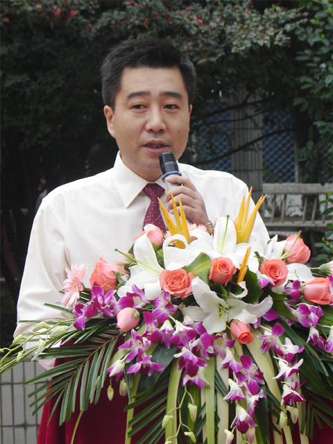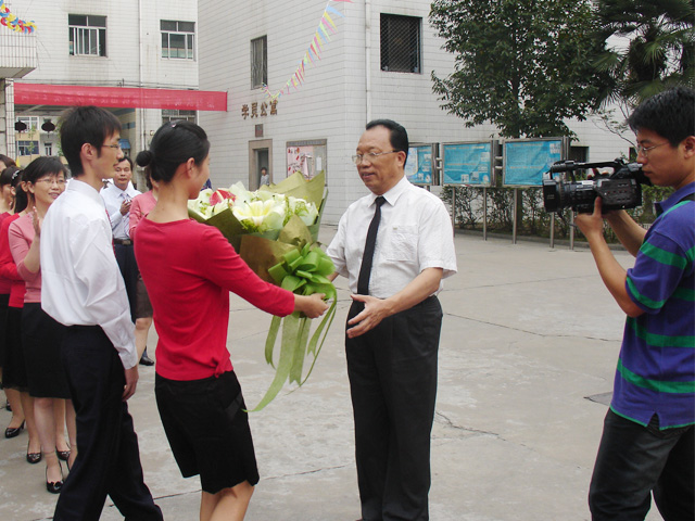 致辭中,在常務副院長王彬的倡議下,于84年及87年出生的兩位員工帶著全院上下的熱切而誠摯的祝福,向錢院長敬獻了鮮花,并與院長合影留念。