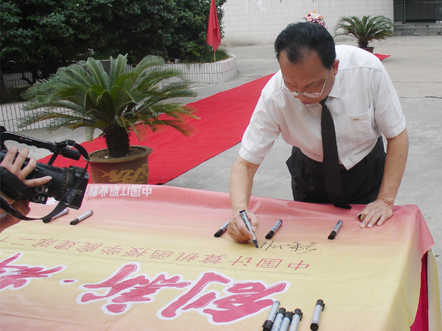 錢洲勝院長帶領全體干部員工進行簽名儀式