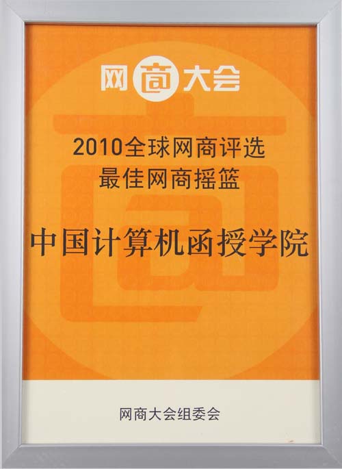 由阿里巴巴集團聯手中國電子商務協會、杭州市人民政府共同主辦的第七屆網商大會暨第六屆西湖論劍于9月10日在杭州盛大召開。此屆大會被國內外主流媒體公認為史無前例的“網商盛典”,同期舉辦的“十大網商”評選活動成功吸引了全球數萬家網商的參與,號稱在互聯網時代成長起來的全民網商大會。大會現場揭曉了第七屆“全球十大網商”獎項名單,以及全球最佳網商搖籃獎的單位,中國計算機函授學院有幸獲得“2010全球最佳網商搖籃”稱號,頒獎典禮在浙江省人民大會堂隆重舉行。