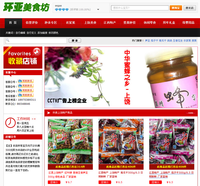 為了豐富網店內容、完善網店服務及功能,使我校網店“環亞美食坊”“hymsf.taobao.com”店能夠更好的為大家服務,在裝修技術人員和策劃設計人員的努力下,本網店進行了改版升級,不一樣的風格會給您帶來不一樣的驚喜及收益。