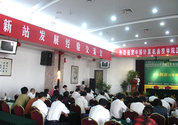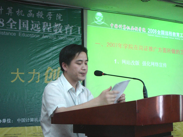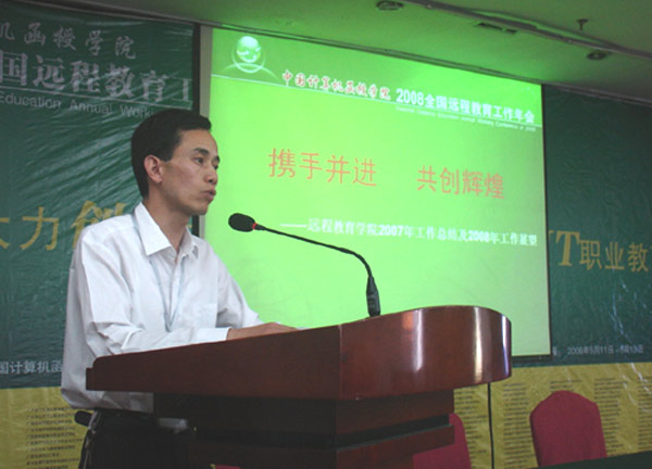 5月11日至13日,我國規(guī)模最大的計算機(jī)教育集團(tuán)年度盛會,中國計算機(jī)函授學(xué)院2008全國遠(yuǎn)程教育工作年會在江西九江勝利召開。學(xué)院院長錢洲勝、副院長曾向紅、技術(shù)總監(jiān)楊輝軍、教育總監(jiān)張維勇、張志平顧問和遠(yuǎn)程教育學(xué)院、圖書出版部有關(guān)負(fù)責(zé)人出席會議。來自全國各地近300家教學(xué)分院及站點(diǎn)校長參加了此次盛會。本次大會主題是“大力創(chuàng)新辦學(xué)模式、引領(lǐng)IT職業(yè)教育”。