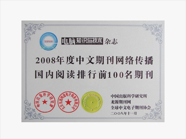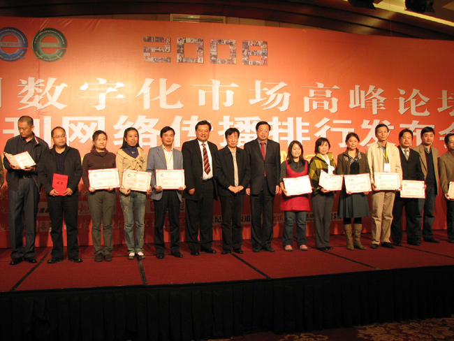 中國(guó)期刊協(xié)會(huì)會(huì)長(zhǎng),原新聞出版署副署長(zhǎng)石峰先生(左七)為我社頒“2008中文期刊網(wǎng)絡(luò)傳播國(guó)內(nèi)閱讀TOP100期刊”獎(jiǎng)項(xiàng),《電腦知識(shí)與技術(shù)》雜志社楊輝軍總編(左四)上臺(tái)領(lǐng)獎(jiǎng)。